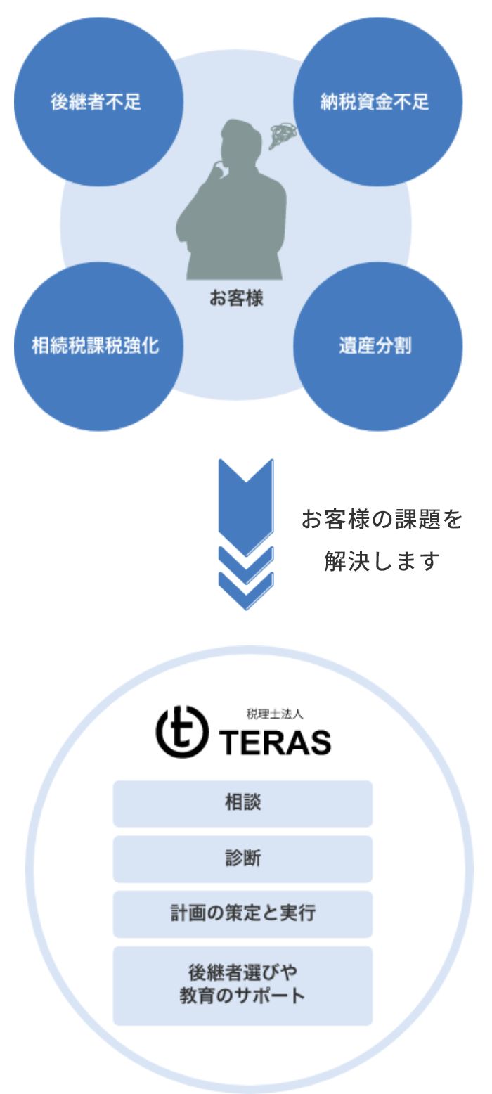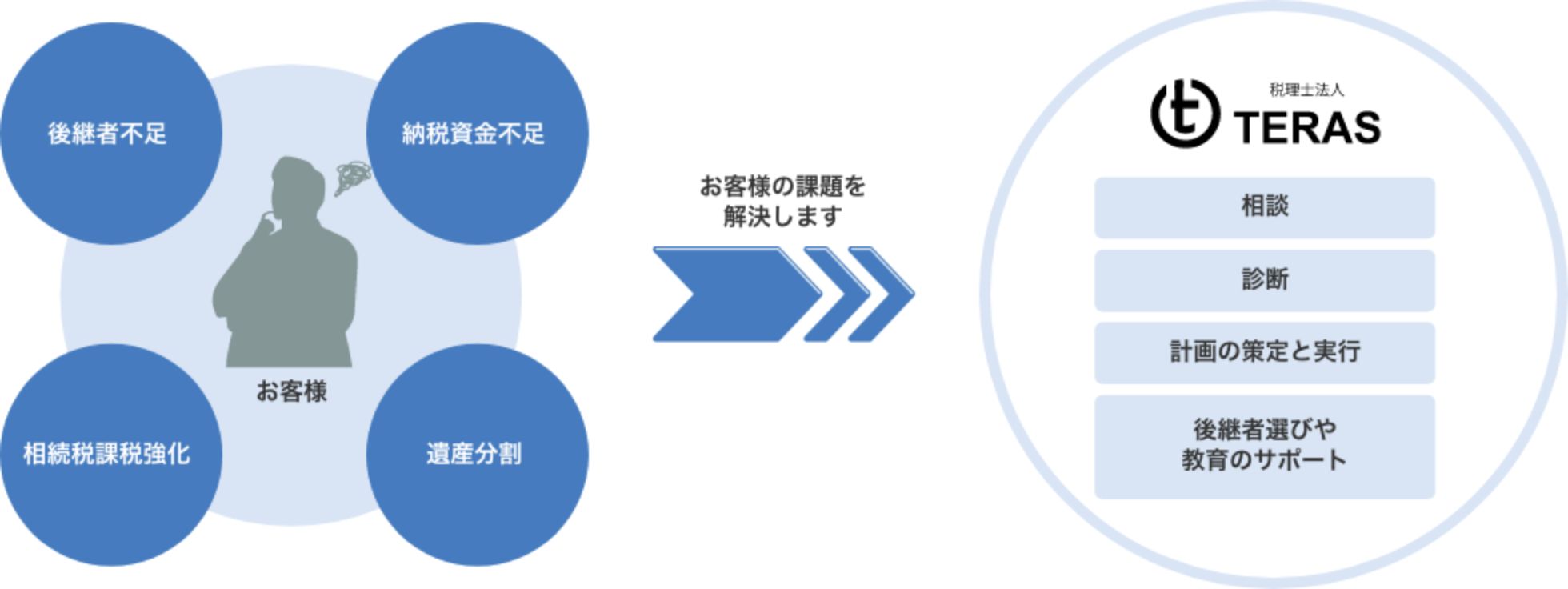 TERAS(テラス)は、承継のための適切な準備はもちろん、承継後も事業発展のためのサポートを続けます。